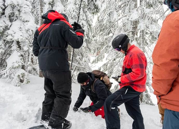 A: Our courses are 24+ hours over 3 days. Day 1 and 2 are typically a morning classroom session followed by afternoons in the field. Day 3 consists of a full day in the field to emphasize practical, hands-on experience in real snow conditions, because that’s where the learning really sticks.